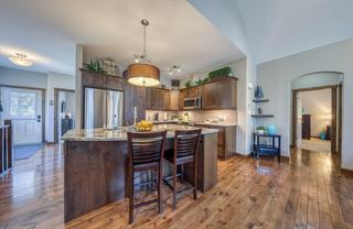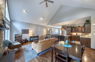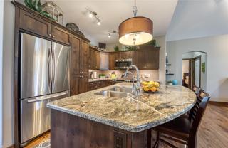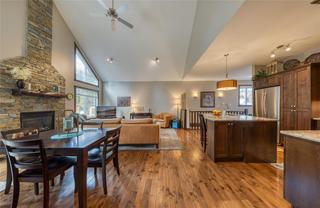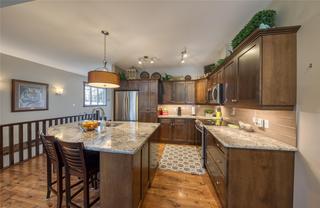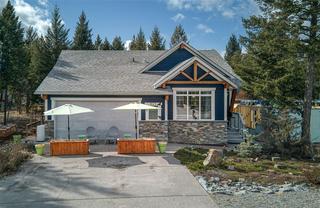 LOVE WHERE YOU LIVE! When viewing this lovely home in the Cottages at Copper Point, you will see the pride of ownership throughout the entire property. With gorgeous views of Mount Swansea right out the front door & a simply perfect oasis of nature in the backyard, you also will love this property inside and out. From the moment you step in the front entrance you will be wowed by the vaulted ceilings in the open floor plan & drawn to the gorgeous rock fireplace in the living room. The kitchen features immaculate stainless steel appliances, gorgeous granite counters & an upgraded Miele dishwasher. Rarely do you find a home that features two spacious bedrooms on the main floor, both with full ensuites. The primary bedroom has a walk-in closet & the guest bedroom has amazing views of the mountains. Step onto the expanded back deck to see all the fenced backyard has to offer; greenhouse, corner shaded patio under the trees, shed, garden boxes & hot tub. Absolutely a gardener's dream space, but also can be low maintenance if you choose. The front driveway is the morning patio or evening escape from the sun, relax and take in the stunning views. Downstairs you can chill in the huge rec room, enjoy some me time in the extra bedroom, or get some work done in the office. Plus there is plenty of storage space, organized to perfection. Do not forget the heated garage, use it for your cars or a hobby space, homeowners choice! Don't miss out on this amazing home & book a showing today!