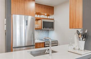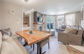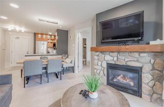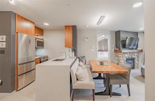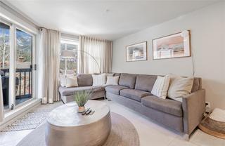 **SKI TIP NUMBER 202 – UPPER VILLAGE FULLY RENOVATED CORNER UNIT WITH MOUNTAIN VIEWS – TURN-KEY - FULLY FURNISHED - SLEEPS 8** Look no further, this 2 bedroom, 2 bathroom luxury suite offers ski in / ski out living, 2 ski lockers, underground parking. COMPLETELY RENOVATED and designed to include oversized heated tile flooring throughout, all new cabinetry, full size dishwasher rare to the building, Heier French door refrigerator, waterfall countertops, accent lighting, luxurious tiled bathrooms, painted throughout, LED pot lights and acoustic drapery in the primary bedroom. FURNISHING PACKAGE includes a king bed in the primary bedroom, two separate beds in the second bedroom with trundle pull out mattresses, king sized fold out couch in the living room, fully equipped kitchen, patio furniture and more. Your friends and family will forever be thankful that you snapped up with incredible property that truly allows a year round recreational getaway like no other walking distance to everything you have in mind. Pool access (water slides in the summer) and surrounded by coffee shops, Alto Restaurant, the T-Bar restaurant and located above the main lodge which offers a host of breakfast / lunch options. Act now and enjoy for a lifetime. STRATA FEES INCLUDE ALL UTILITIES.