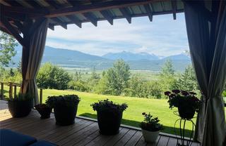 Stunning 23-Acre Hillside Retreat with Panoramic Mountain & River Views Perched on a serene 23-acre hillside and perfectly oriented to capture breathtaking west-facing sunsets, this exceptional property offers a rare blend of privacy, natural beauty, and modern comfort. Enjoy sweeping views of the mountains and Columbia River, surrounded by untouched wilderness and frequent visits from local wildlife. The well-maintained home features numerous upgrades and has been lovingly cared for, making it move-in ready. Whether you're soaking up the sun or dining al fresco, the new oversized gazebo provides the perfect shady retreat to enjoy the scenery throughout the day. With a mix of sloped and usable flat land, there are several ideal spots to build a shop, barn, or guest cabin, unlocking even more potential for hobby farming, recreation, or extended family living. There is currently a fenced in garden area, ready to use. Located just 30 minutes from Invermere and 20 minutes from Radium Hot Springs, you’ll enjoy peaceful seclusion without sacrificing convenience. Whether you’re looking for a full-time residence, recreational escape, or investment property, this is a true Columbia Valley gem.