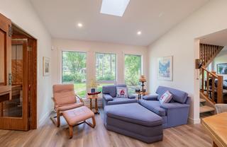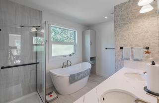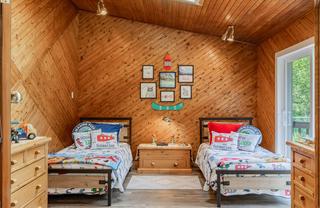 **INCREDIBLE NEWLY RENOVATED LAKE HOUSE ON A PRIVATE .57 ACRE PARK-LIKE PARCEL OF LAND - MASTERFULLY REFINISHED IN 2025 TO CURRENT CODES AND STYLE + 2 DETACHED GARAGES** Your recreational or full time home has arrived and it is short walking distance to the Trethewey Beach, boat launch and marina. This beautiful home sits on a large corner lot on copper crescent, set back from the road and offering a variety of low maintenance green spaces, 2 fire pit areas, and three crossings over Edward creek - a beautiful sleepy creek running through the property. 2025 renovation was complete with a gorgeous new chef inspired kitchen w Bosch appliances and quartz countertops, 2 full bathrooms with his and hers sinks, new framing, drywall, electrical, triple pane windows, flooring, plumbing with fixtures, upgraded insulation, all new interior drywall, tile and luxury vinyl plank flooring, roofing and siding on home and garages repainted-repaired and replaced where required, new heat pump, three in wall AC/HEAT split units and much more. Designed to comfortably house and entertain visitors in comfort with well separated sleeping quarters, a central kitchen / living area and the ability to make the main level bedroom and ensuite your primary bedroom should main floor living be important. Enjoy the boat, car and toy storage provided by 2 detached garages! This virtually new property is offered FULLY FURNISHED. Secure your family estate today and start making memories at the lake this summer.