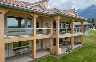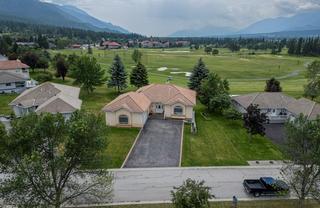 Welcome to your Stunning Retreat on the first fairway of Riverside Golf Course, located between the Rockies and Purcell's with SPECTACULAR GOLF COURSE & Mountain Views from EVERY window. This FULLY DEVELOPED walk-out offers INCOME Potential!10ft ceilings on the Main with gas fireplace & lower wood burning! The BRIGHT GRAND, OPEN-plan living, dining, and kitchen areas are ideal for entertaining, with bar seating, skylight, DRAMATIC full-length covered balcony perfect for year-round BBQs. Main level 2 bedrooms & 2 baths including a luxurious ensuite with oversized steam shower, walk-in closet and Direct access to Covered Deck area! Convenient Main floor Laundry and Main bath for Guests which is MASSIVE! The lower level features a SPACIOUS family room, wet bar, 1 bedroom + den, 1 bath, and opens to a finished VIEW PATIO. HERE it is POTENTIAL INCOME suite offers a full kitchen, living area, bedroom, bath, laundry, and private outdoor access. Oversized HEIGHT & WIDTH heated double garage with lofts & ample driveway parking. Nearby: lakes, rivers, hiking/biking trails, ski hills, Legacy Trail, and Fairmont Hot Springs. Walk to golf, shops, restaurants, and amenities. 4 bedrooms + den, 4 baths, 2 kitchens, 2 laundry rooms, + wet bar. Includes: 3 fridges + mini, 2 stoves, 2 dishwashers, 2 microwaves, 2 washer/dryer, garburator, vacu-flo, garage opener, and underground sprinklers. LIVE YOUR BEST LIFE YEAR ROUND OR USE IT AS YOUR RELAXING MOUNTAIN VACATION HOME IT IS MOVE IN READY!